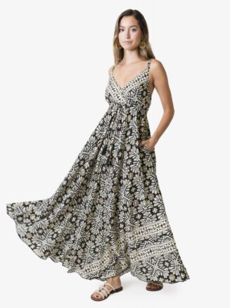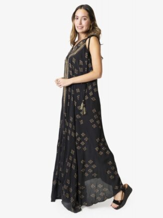 Vestido largo estampado negro