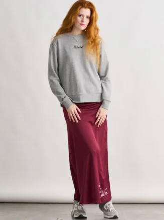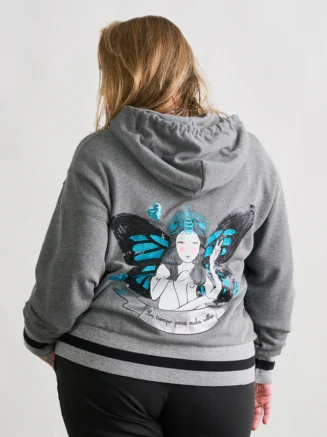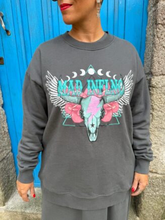 Sudadera larga con felpa interir, ilustración bordada y serigrafía da en colores muy llamativos, color gris plomo