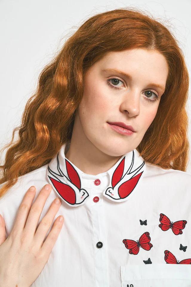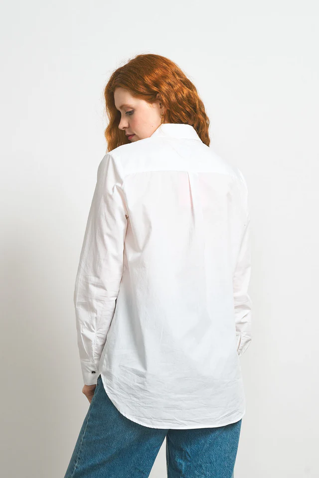– Abertura delantera con botones, bajos desiguales y redondeados, y canesú con tabla en la parte trasera.