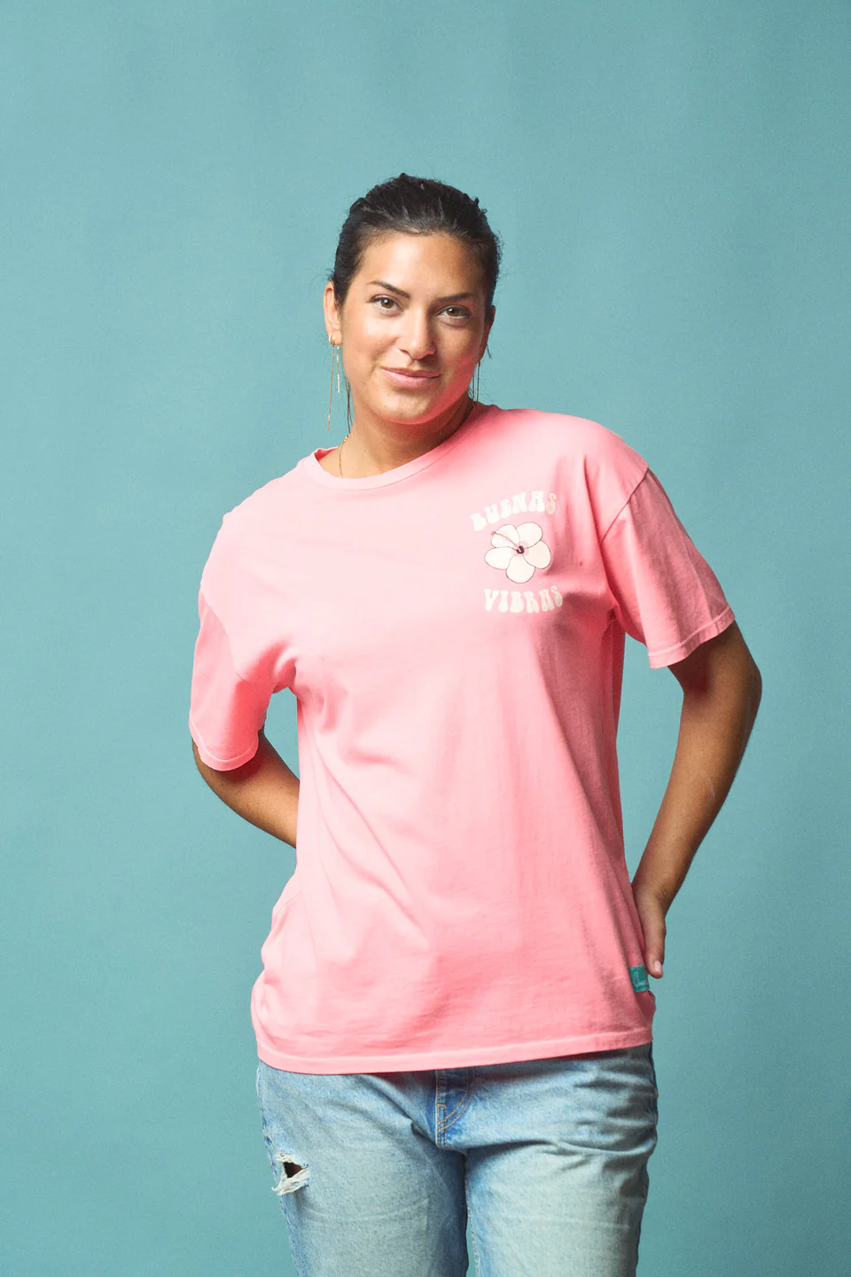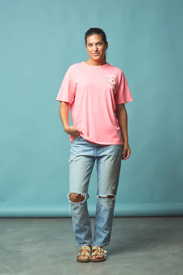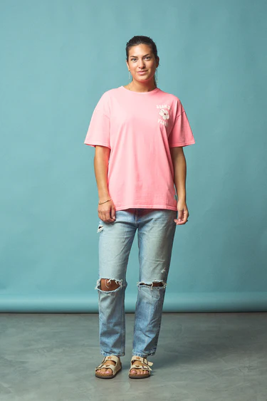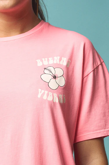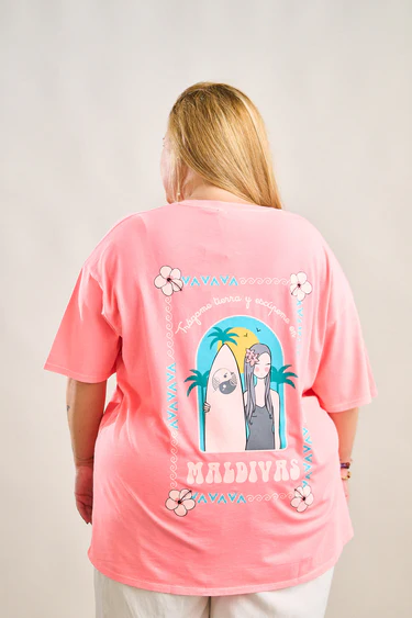-Camiseta de corte oversize, manga corta y cuello redondo.