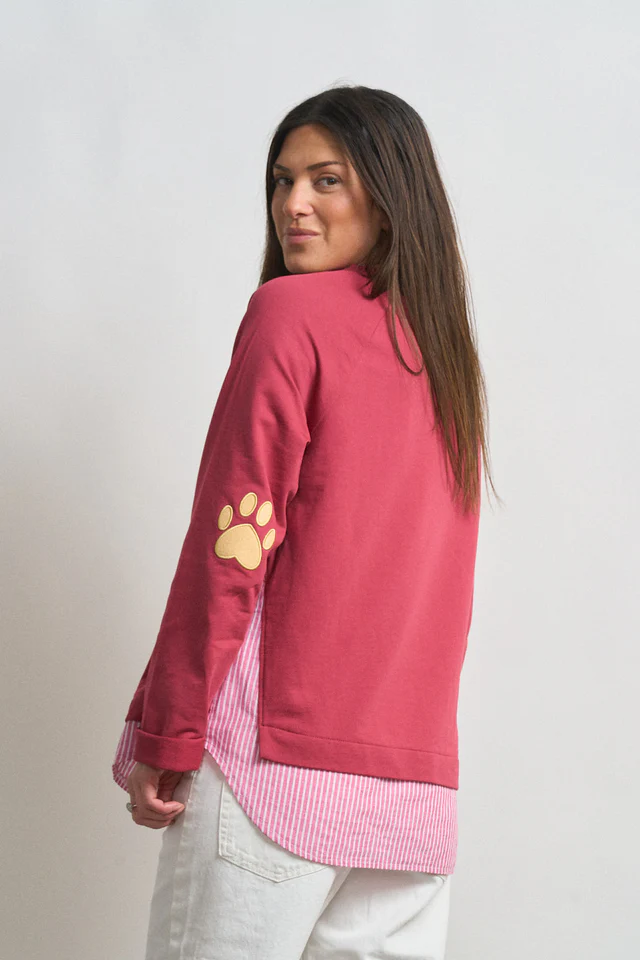 -Bajo de camisa popelín interior adherida en el cuerpo de la sudadera.