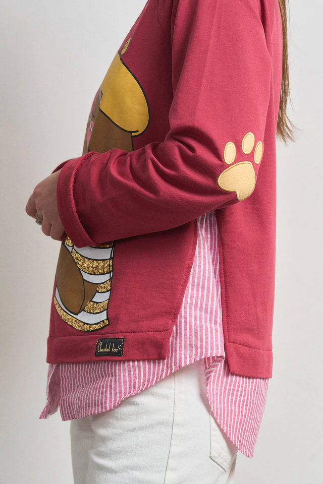 -Maxi print delantero con aplique de lentejuelas y frase bordada.