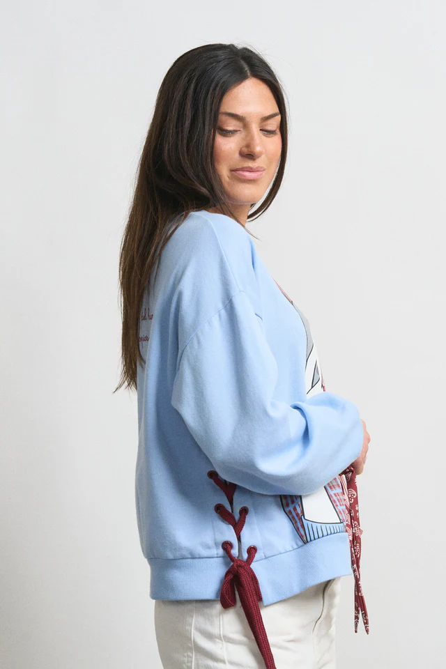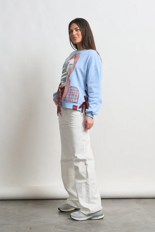 -Sudadera felpada de corte oversize, manga larga y cuello redondo.